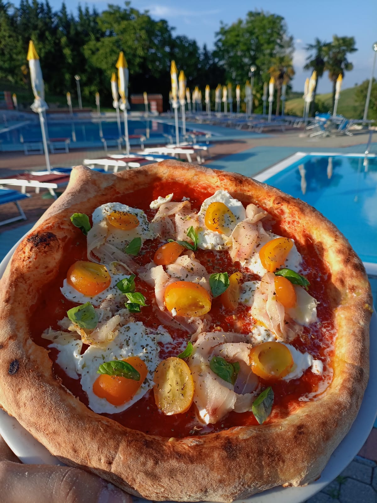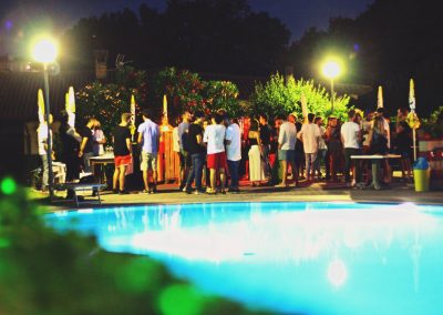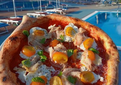 In estate, su richiesta, si potrà godere di una fantastica cena nel dehor estivo situato davanti alle due splendide piscine.